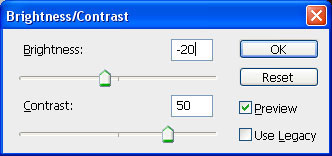 We need to reduce brightness and increase contrast with Image > Adjustments > Brightness/Contrast.