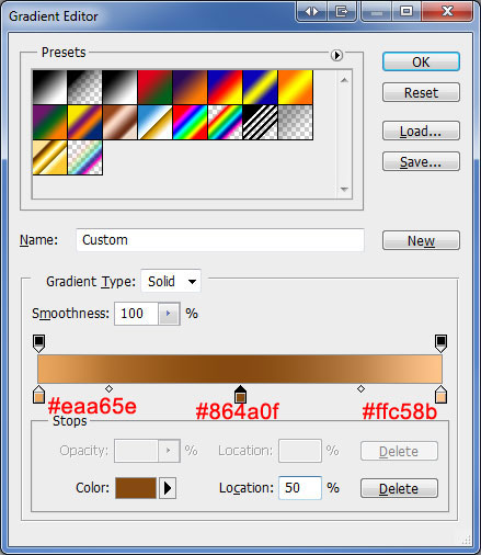 Create a new document with 800px width and 500px height. Fill background with linear gradient using Gradient Tool.