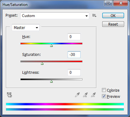 We need to reduce light intensity so go to Image > Adjustments > Hue/Saturation.