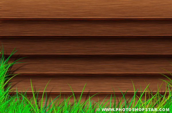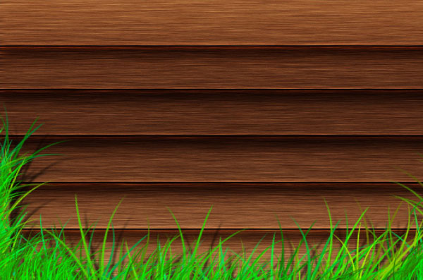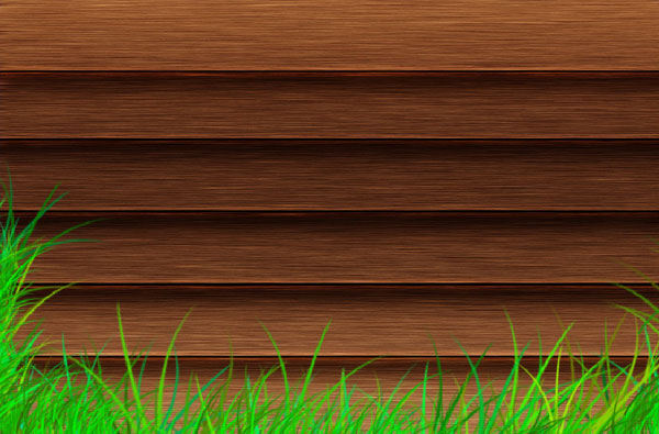 Create new layer on top. Select Brush Tool and Grass Brush (it is one of standard brushes that comes with Photoshop). Change foreground color to green (#00ed00) and draw some grass.