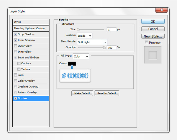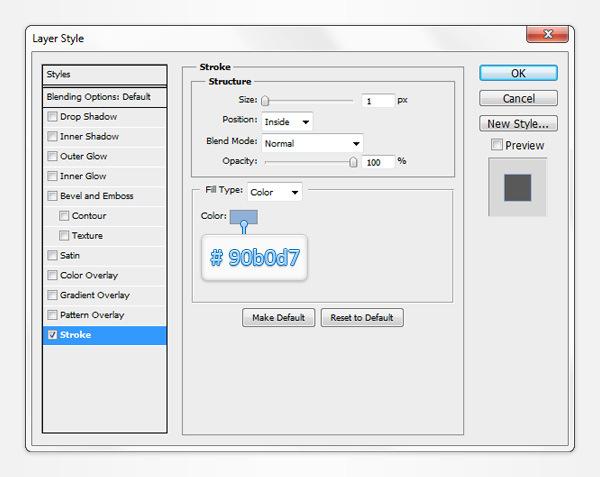 Move to the Layers panel and drag this new vector shape below your "front" shape. Open the Layer Style window for this blue vector shape, activate the Stroke, enter the properties shown in the following image and click OK. Return to the Layers panel, right click on your blue vector shape and simply go to Copy Layer Style.