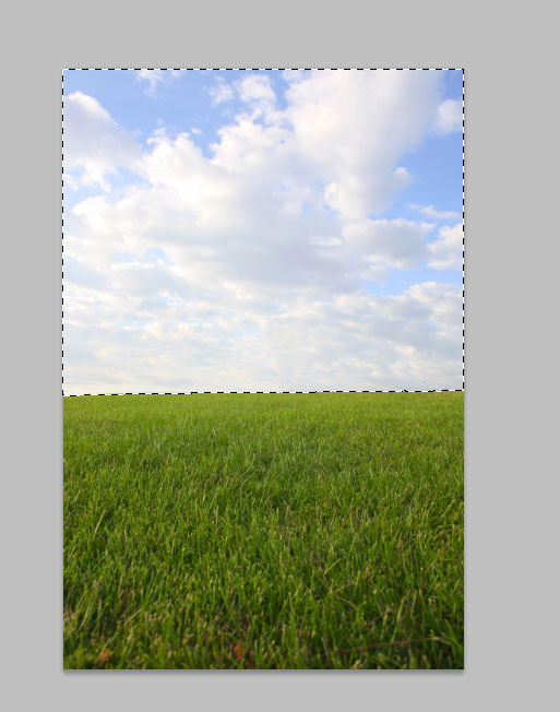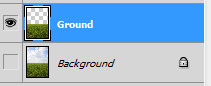 Open file “Field” and make a selection of the sky using the Quick Selection Tool (Q). Press Ctrl + Shift + I to invert the selection and Ctrl + J to make anew layer from the selection. Now we have the ground on a new layer so we can turn off the background layer.