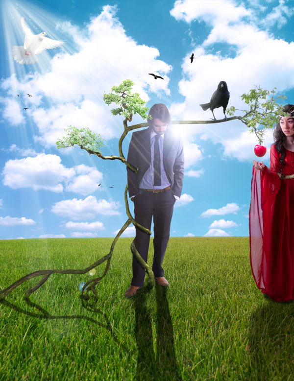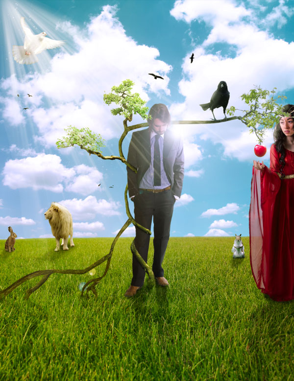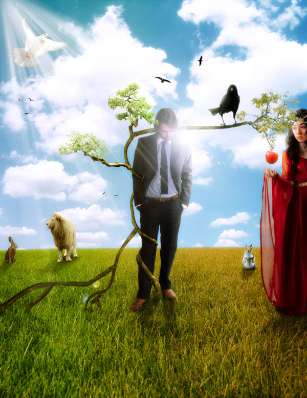 In this Photoshop manipulation tutorial we will create an Adam and Eve scene with warm colors and rays of light. We learn some advanced masking techniques so get your selections tools ready. Let’s get started then.