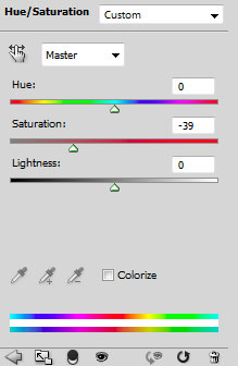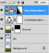And now for the final step let’s lower the saturation of the grass in the front of the scene because we want our viewer’s attention on the main subjects and not on the boring grass. Add a Hue/Saturation Adjustment layer and drag the Saturation slider to the left to lower the saturation. In the layer mask use the Linear Gradient tool to apply this effect only to the bottom of our scene.