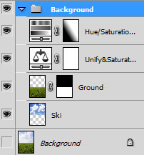 Select all the layers (Ctrl-click on each of them) and press Ctrl + G to group them. Name this group “Background”.