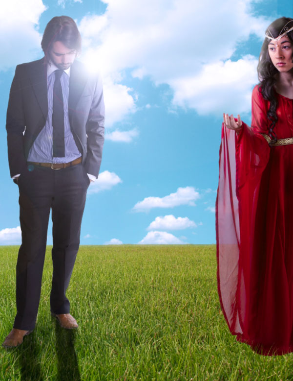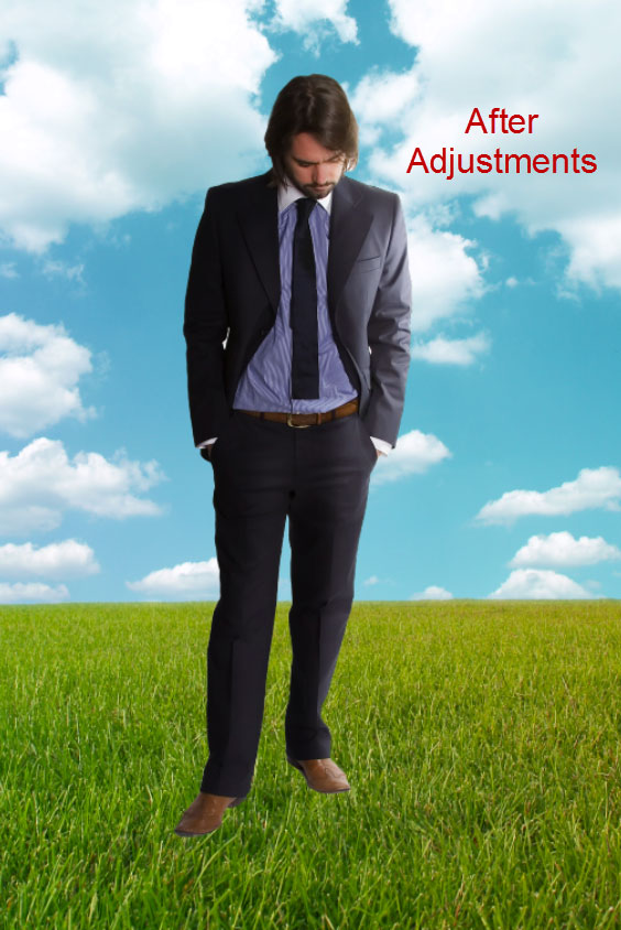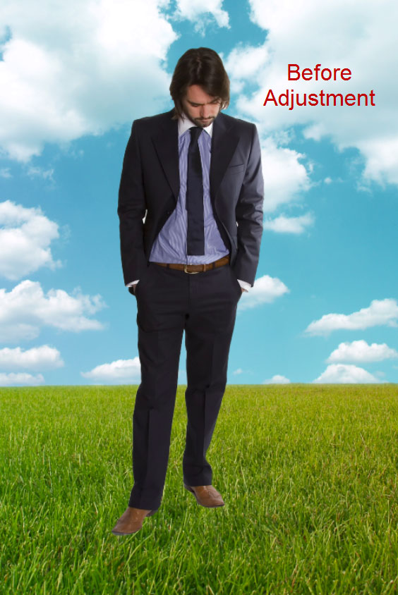 Notice how our man doesn’t seem to integrate into the scene, he seems like he’s floating above the ground. Let’s add some shadow to correct that.