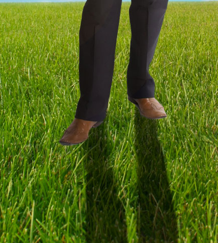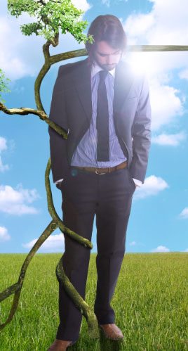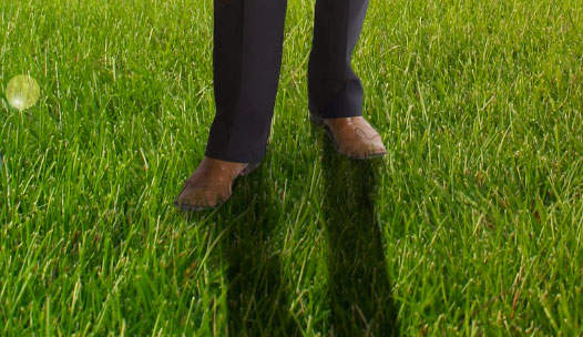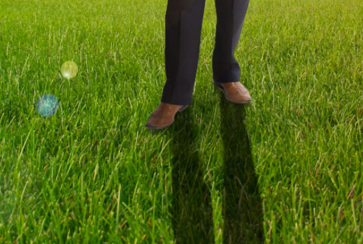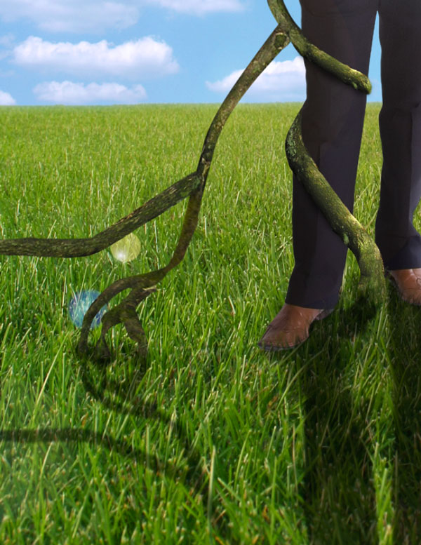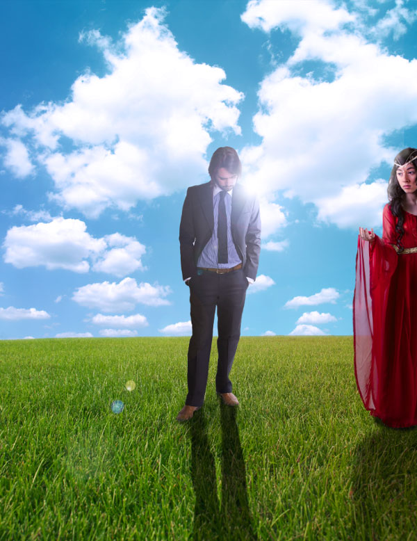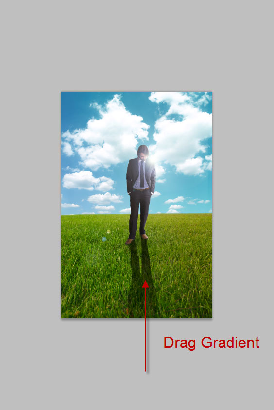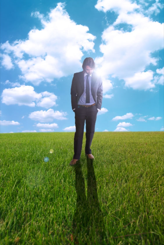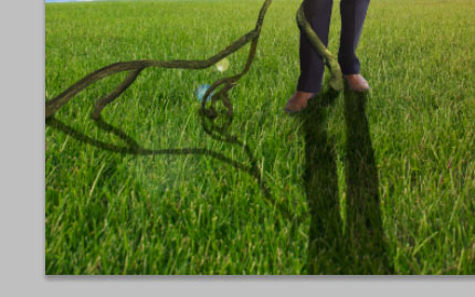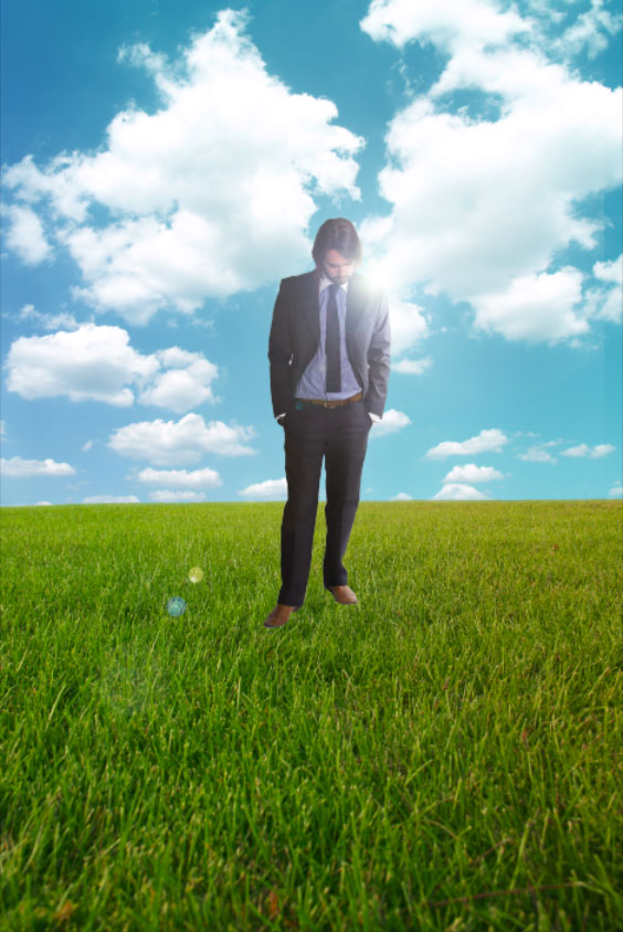 Take a close look at the shoes and notice how the shouse stand just above and not in the grass. We have to put some blades of grass in front of his shoes to achieve this effect. The trick I am going to show you works pretty well for all kinds of objects so you can use it in your further compositions.