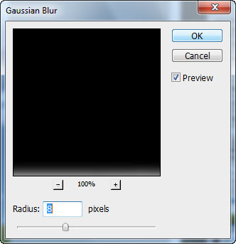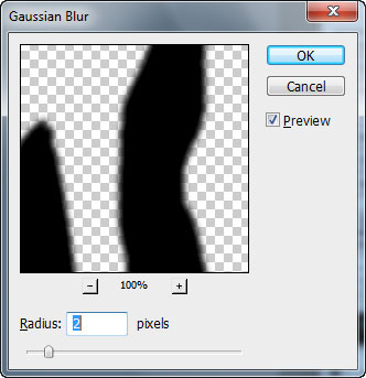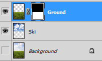 Now Ctrl-click the ground layer to make a selection of the current pixels and with the layer mask selected (simply click on it once) press D to set default colors and Alt + Backspace to fill the selection with white. To blur the horizon press Ctrl + D to deselect all and apply a 8px Gaussian Blur (Filter > Blur > Gaussian Blur).