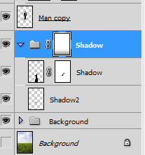 We are almost done with the shadow but still have to add a little detail. Shadows usually fade away as they are further from the subject. To accomplish this effect here first group the two shadow layers (Ctrl-click on each then Ctrl + G) and name this group “Shadow”.
