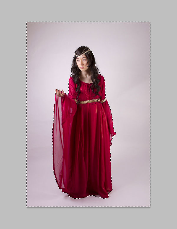 Open file “Woman” and select the background with the Quick Selection tool. Press Ctrl + Shift + I to invert the selection and Copy (Ctrl + C). Paste into our document (Ctrl + V) then position and resize the woman like in the image below. Ctrl-click on it to select the visible pixels. Press Ctrl + Alt + R to open the Refine Edge window and tweak the sliders until the visible edges dissappear. Delete the layer that is not visible and name this layer “Woman”.