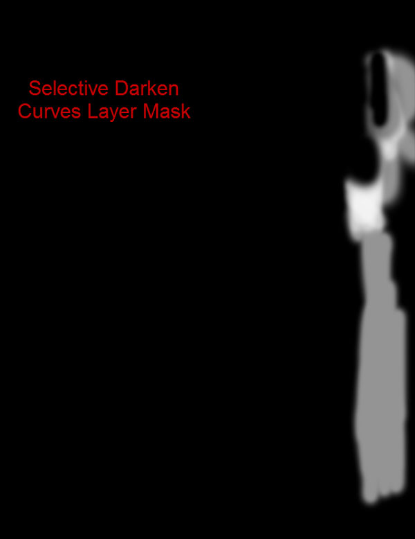 First add a Curves Adjustment Layer (Layer > New Adjustment Layer > Curves) and drag the curve downards to darken the scene. Clip this layer to the man layer (to clip an upper layer to a lower layer Alt-click in between the 2 layerl) and fill the layer mask with black (with black as foreground color press Alt + Backspace). Select a round soft brush and set it’s opacity to 50%. Carefully paint the right side of the man (imagine how the shadows would be if the light is coming from the upper right).
