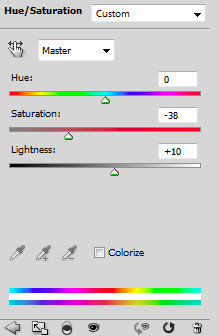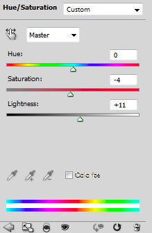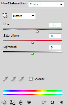 Make a new layer (Ctrl + Shift + Alt + N) and with a round soft white brush at 10 opacity gently brush the left side of the hair (remember, the light is coming from the left). Add a Hue/Saturation Adjustment Layer (Layer > New Adjustment Layer > Hue/Saturation) and drag the hue slider to the right to increase the redness.