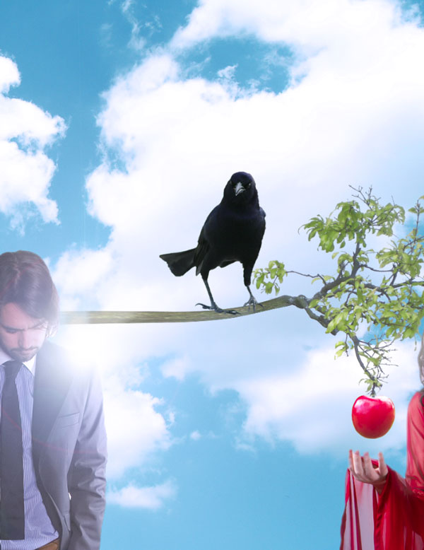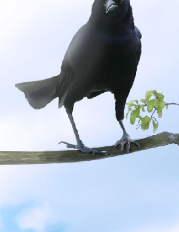 Time to add some extra elements. I am thinking that a black raven would fit just perfect on the right branch. Open file “Raven” and select the raven with your favourite selection tool. Copy the selection (Ctrl + C) and paste it into our document (Ctrl + V). Free Transform the raven and resize him until it is positioned like in the image below.
