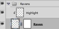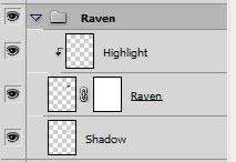 Make a new layer and clip it to the “Raven” layer. With a round soft white brush tool at 30-40% opacity paint the left side of the raven (that’s where the light is coming from). Lower the opacity to around 50-60% procent.