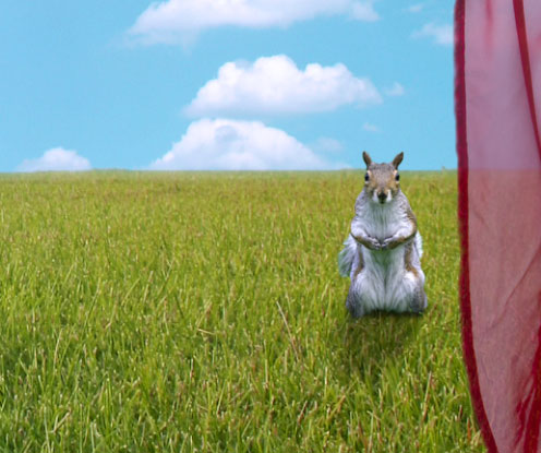 Open file “Squirell” and make a selection of the squirell. Copy and paste into our scene. Free Transform like shown below than paint some shadow on a layer beneath this layer. Change the shadow layer blen mode to Multiply.