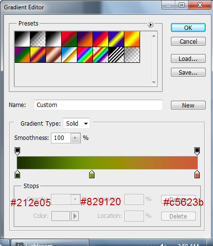 Add a Color Balance Adjustment layer and increase the Red and Yellow amount. In the layer mask use the Linear Gradient tool to limit the adjustments to the left side of the image. Next add a Gradient Map Adjustment layer and use the settings shown below. Change the blend mode to Soft Light and decrease the Opacity to 38%.