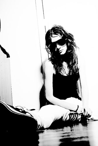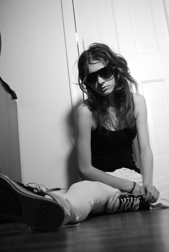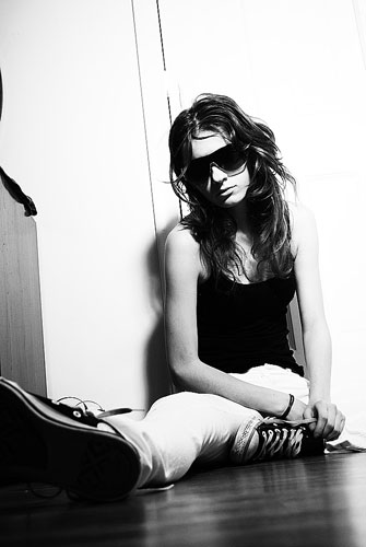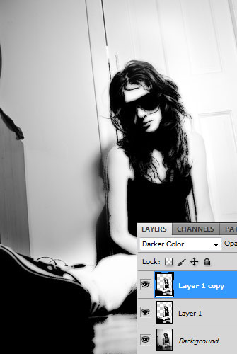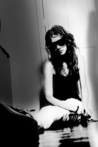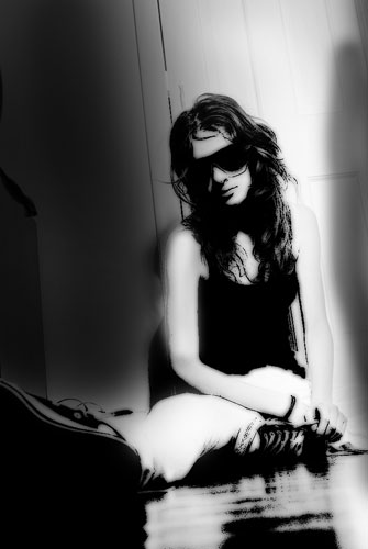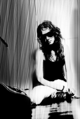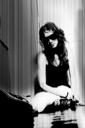 Right now we have 2 layers: black and white photo and upper layer where we apllied all those effects. Choose the Eraser Tool and soft-edged brush with 200 px in diameter and remove carefully the white color around the girl on the upper layer. In the end you will have something similar to my image below.