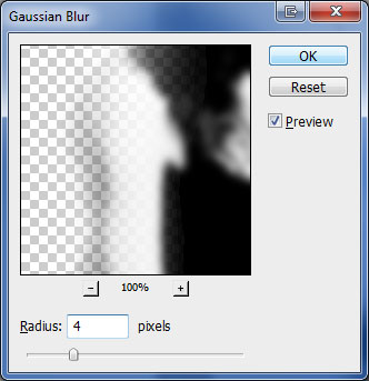 Now we need to add contrast. Copy the upper layer with effects (Ctrl+J) and blur copied layer by using Filter > Blur > Gaussian Blur with next settings: