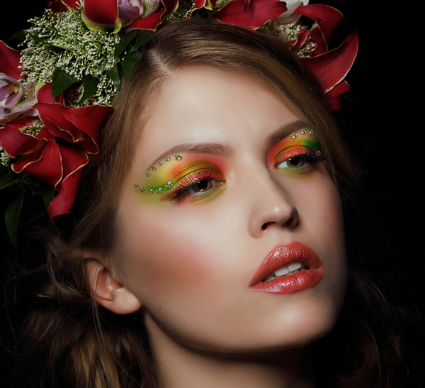 In this Photoshop tutorial I’ll show you how to add a colorful, fashion and creative makeup to a woman’s portrait.