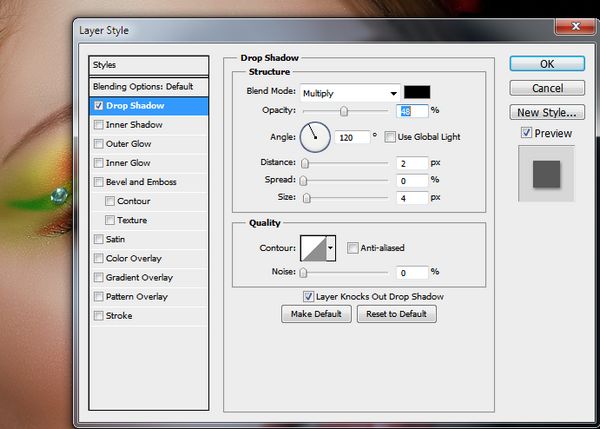 Isolate a gem from the necklace image and add it to the left eyelid.