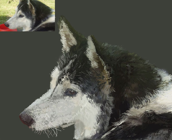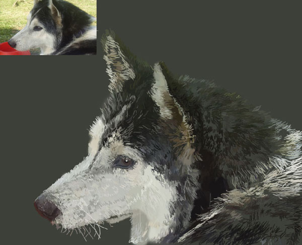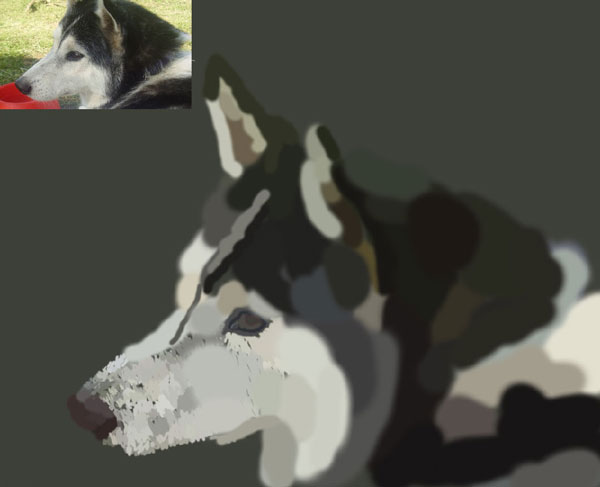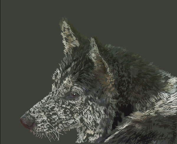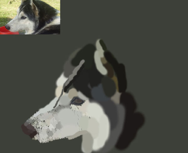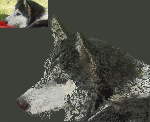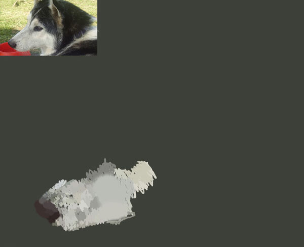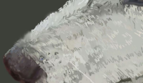 If you are satisfied with the result, make photo layer visible again. You should continue making the animal’s fur with small brush strokes (always on the strokes layer) and changing color with the Eyedropper Tool from time to time.