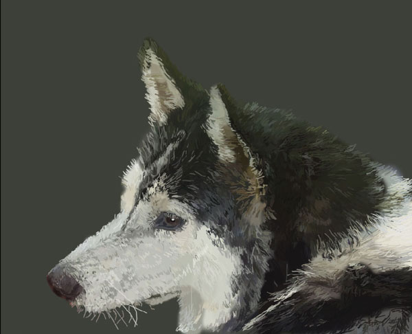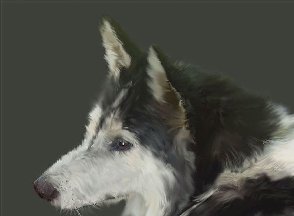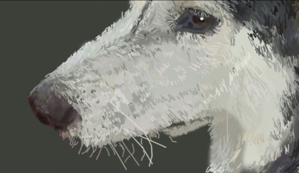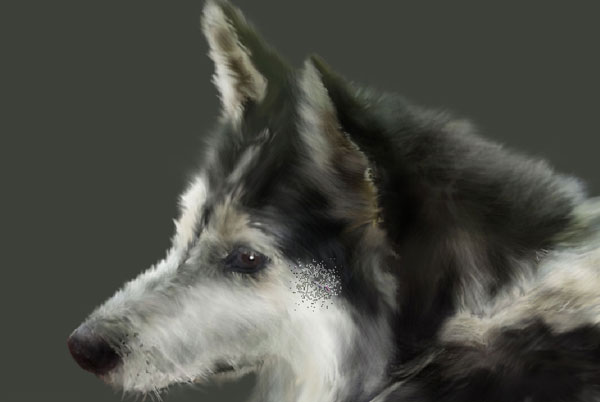 Start creating fur texture from the nose, this is because near the nose the fur is the shortest and needs to be processed more carefully. Further, the diameter of the brush can be increased, but the most important thing is that you must move the brush only in the direction of hair growth. The longer stroke you make, the longer hair you will create.
