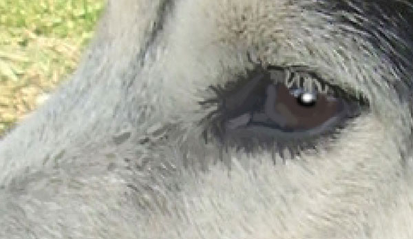 Create a new layer (strokes layer) above all other layers. Select the Brush Tool with a soft round brush and size of 2 pixels. Zoom into the photo and start making small strokes to duplicate animal fur. You can take a sample of the color with the Eyedropper Tool and it is very important to change color on small areas, because when you zoom into the picture, you can see a big variety of color.