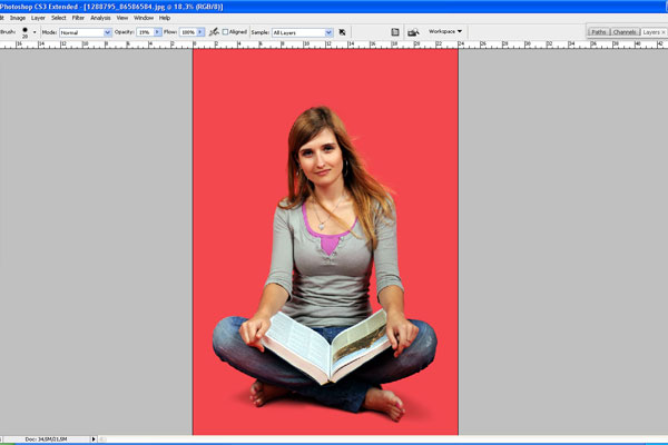 With the Crop Tool selected crop the photo as shown on my screenshot below. After that, select the Polygonal Lasso Tool to cut the lady’s silhouette from the background.