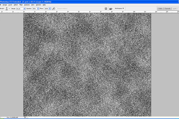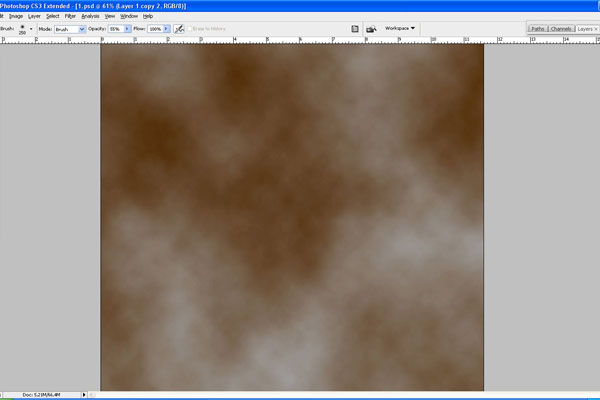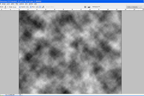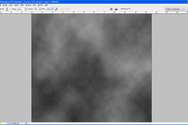 Create a new layer, press ‘D’ to set the foreground and background colors as black and white and apply Filter > Render > Clouds again.