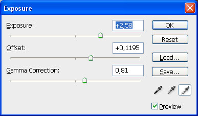 Add one final adjustment layer by using Layer > New Adjustment Layer > Exposure with following settings: