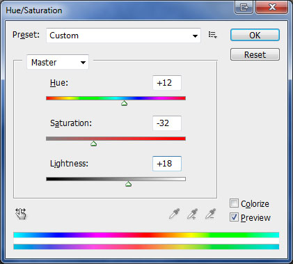 Apply Image > Adjustments > Hue/Saturation to make color correction on this layer.