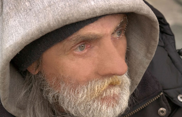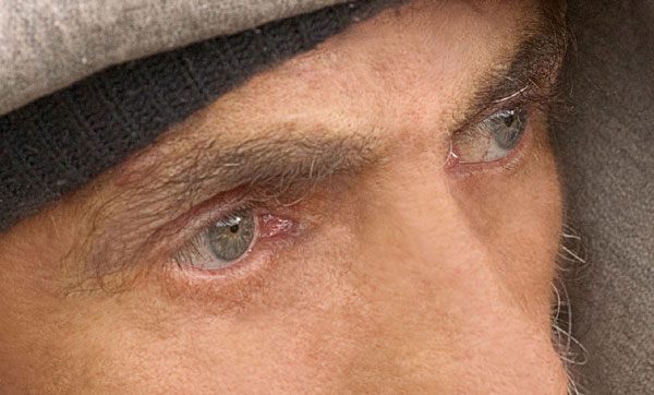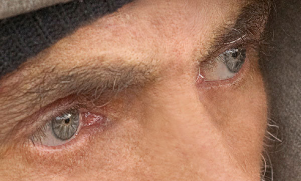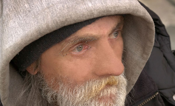 Select Clone Stamp Tool to remove under-eye hollows, then use the Brush Tool to reduce blood vessels on eyeball areas. You can take color samples with the Eye Dropper Tool.