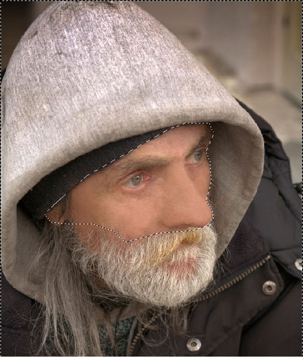 Duplicate layer with Ctrl+J and work on duplicated layer. Apply Polygonal Lasso Tool to select face area and use Select > Invert to invert selection.