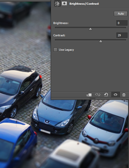 Our final result looks good enough but I feel there one more step we can take to make it look even better. We’ll do that by increasing the contrast. We can increase the contrast in a variety of ways but let’s make it simple – create a Brightness/Contrast Adjustment Layer and increase the Contrast slider to 29. You will see a noticeable increase in contrast. And this was it – that’s how you achieve a tilt-shift effect with a picture.