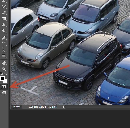 Before starting to create our tilt shift effect open the photo “Cars” or open your own photo. This effect works best with pictures that are shot from a high angle, like the photo shown below.