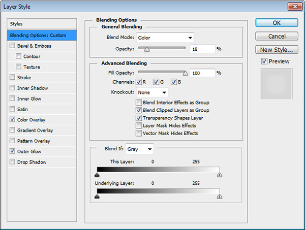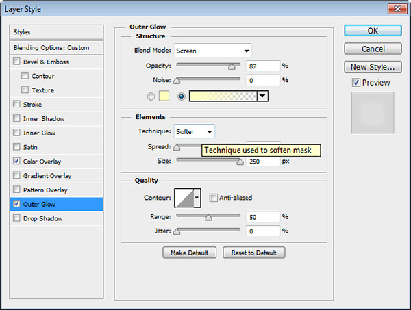 It looks nice enough as it is but I think that a bit of glow will make it look better. Duplicate the rainbow layer by pressing Ctrl + J. Double-click the layer to enter Advanced Blending options. Use the following settings: