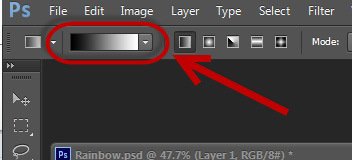 Select the Gradient Tool (G) and click on the icon shown below to edit the gradient.