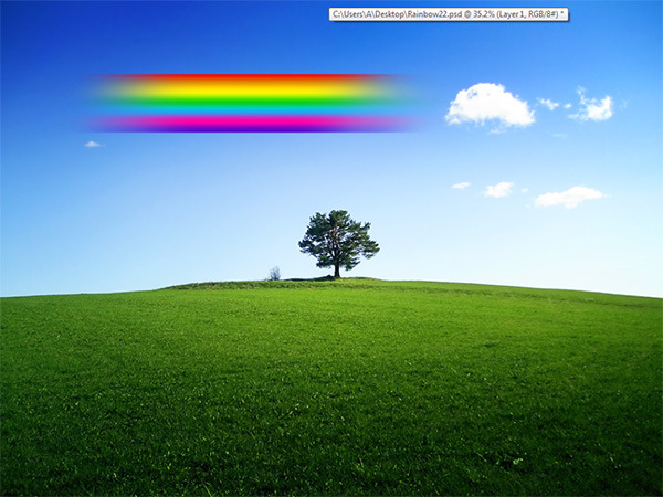 Let’s increase the size of our rainbow and position it a bit better. Press Ctrl + T to enter Free Transform and modify the size and position to make it look like mine in the image below. To symmetrically resize hold the Shift key while dragging on the corners.