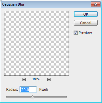 Now let’s add some blur in order to disperse the colors. Choose Blur > Gaussian Blur and enter a value of 20px. Make sure the layer is deselected (press Ctrl + D just to be sure) otherwise you’ll get unwanted effects.