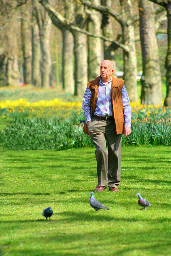 Notice how on the right of the old man, at his feet level, the grass is sharper than the grass further away (at his knee level). Let’s try to achieve the same result on the left side. Set your source point from a place where the grass is sharp and carefully clone some more.