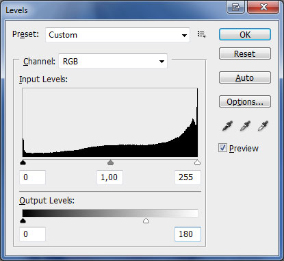 Background is too white so we need to reduce brightness of whole photo by going to Image > Adjustments > Levels.