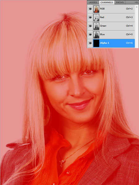 Hold Ctrl button and click on Alpha 1 channel thumbnail on Channels palette to load selection of this channel.