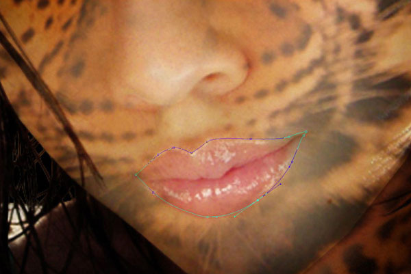 Hide this layer temporarily by clicking on layer eye. Select Pen Tool again to create lips form. When you have finished drawing right click and select option Make Selection.