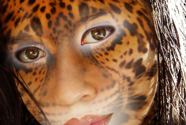 Select layer with jaguar texture and use the Dodge Tool to make eyes brighter.