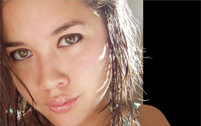 Now we need to update eyes color. Select layer with woman photo and with Polygonal Lasso Tool create selection of one eye pupil. With Shift pressed, create selection of second eye pupil.