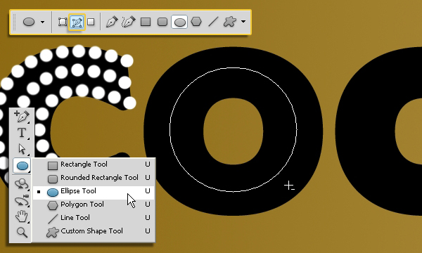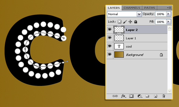 Repeat the same process for the remaining letters. You can use custom shapes instead of drawing the curves when possible (like using the Ellipse Tool, with the Paths icon in the Options bar clicked, for the O letter).