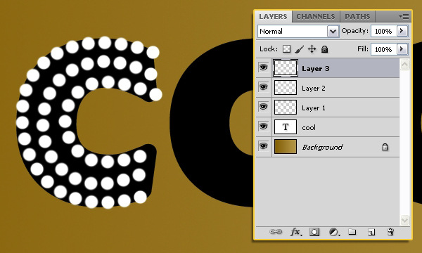 Once you’re done, each letter will have 3 layers covering it with dots.