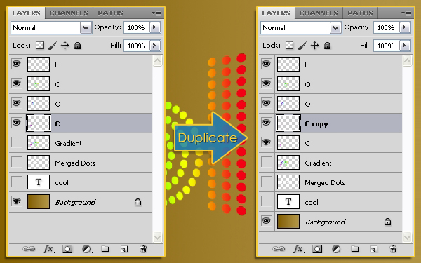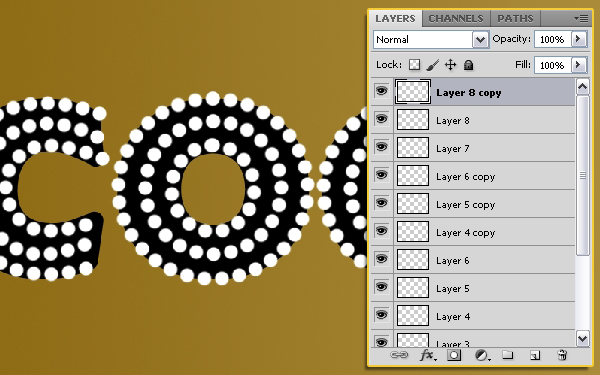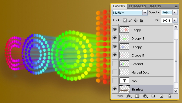 Duplicate the merged letters’ layer (cool), and drag the copy layer below the original one.