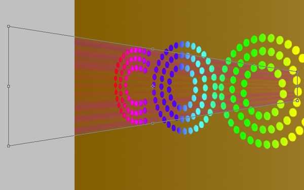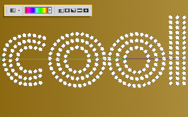 Pick the Gradient Tool, and choose the Spectrum Gradient. Create a new layer on top of all layers and call it “Gradient”, then fill the selection with the gradient.