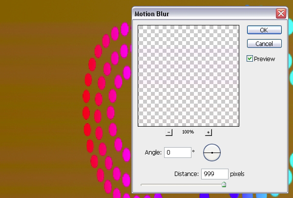 Go to Filter -> Blur -> Motion Blur, and set the values as shown below: